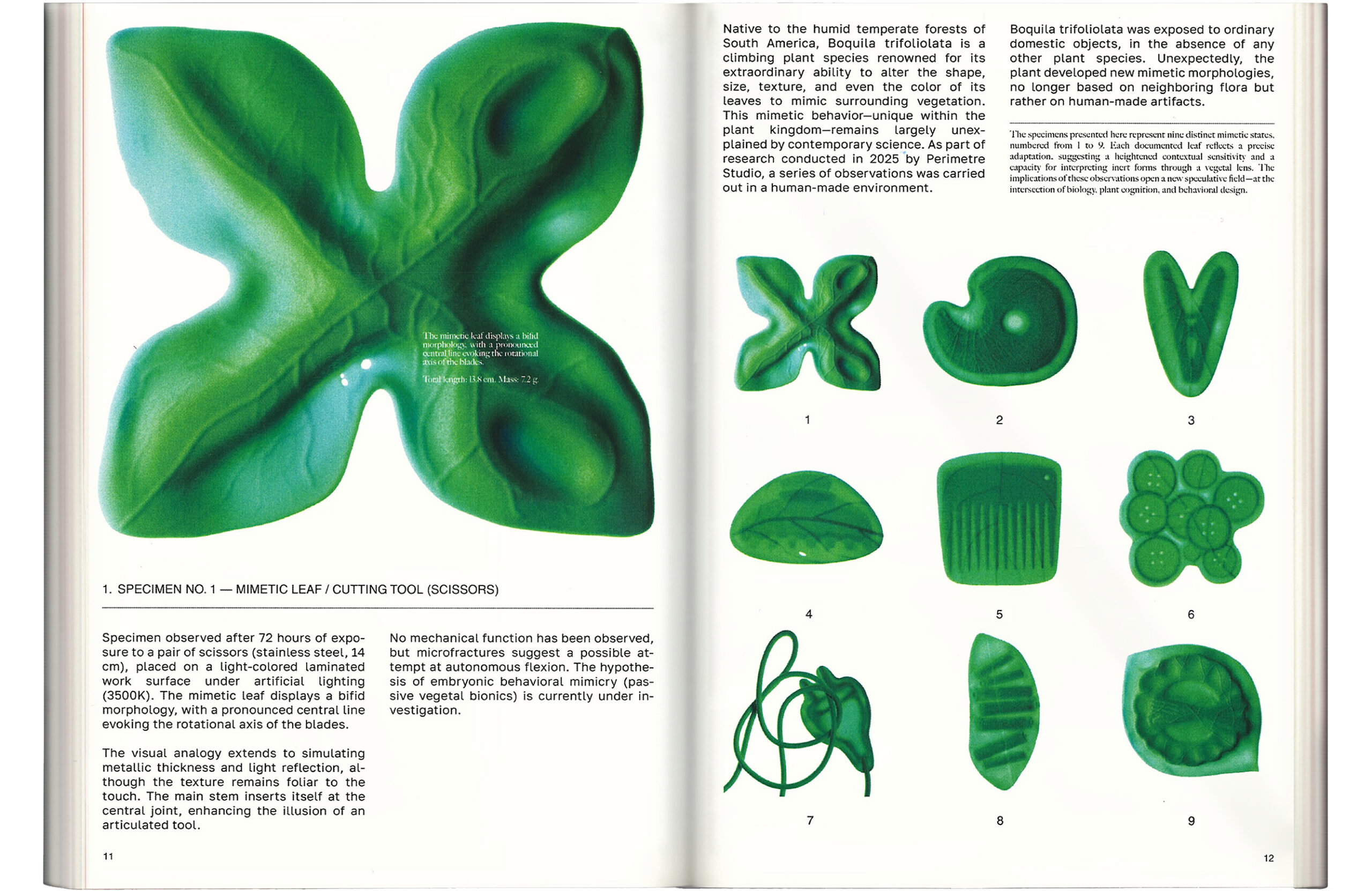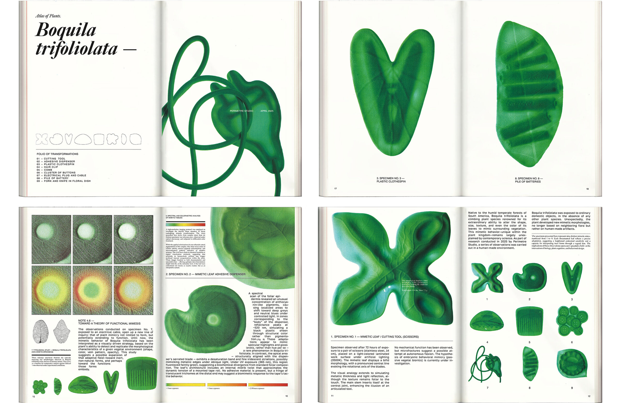 A R&D visual experiment series about a real climbing plant, caught mimicking everyday tools. From the mesmerizing abilities of the Boquila Trifoliolata plant, we’ve imagined a whole botanical exposé showcasing the wonders of such a shapeshifting vegetal in both CGI naturalist stills and scholarlike layout designs.